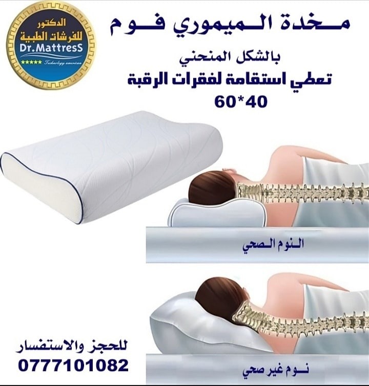 مخدة الميموري فوم المنحني تعطي استقامة لفقرات الرقبة وتعمل على تعبئة الفراغ بين الاكتاف للتخفيف من الشد العضلي